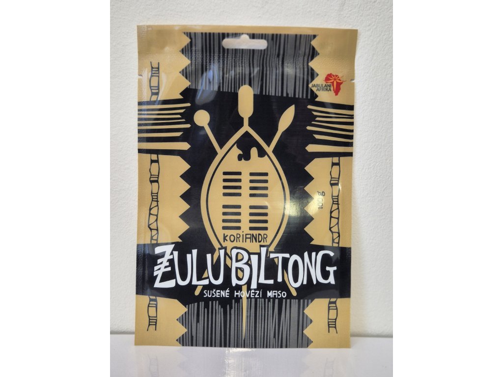 Zulu Biltong Koriandr je ručně krájené kvalitní hovězí maso z falešné svíčkové, naložené ve speciální směsi afrického koření a sušené teplým vzduchem. Oproti Originálu je zde přidáno více koriandru.